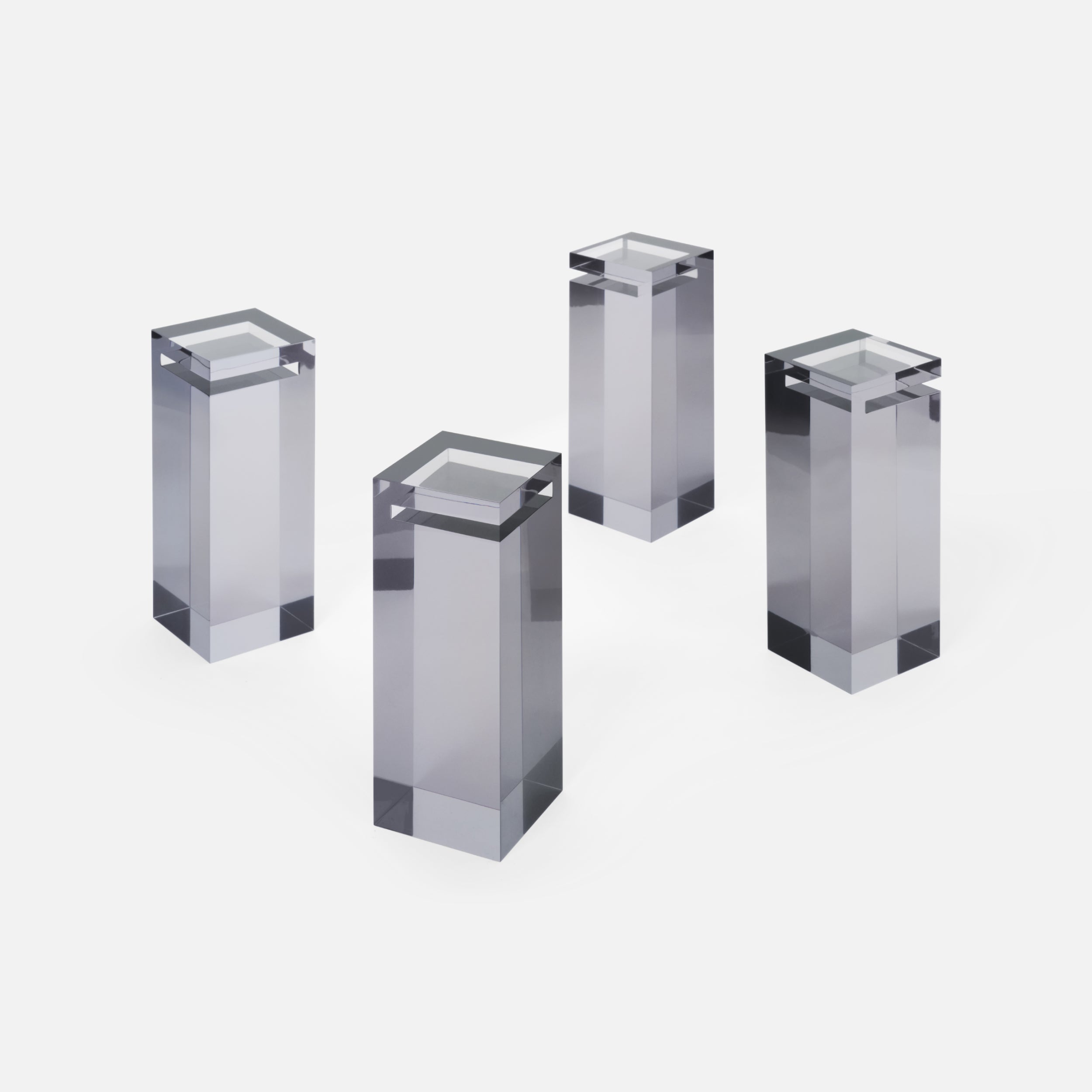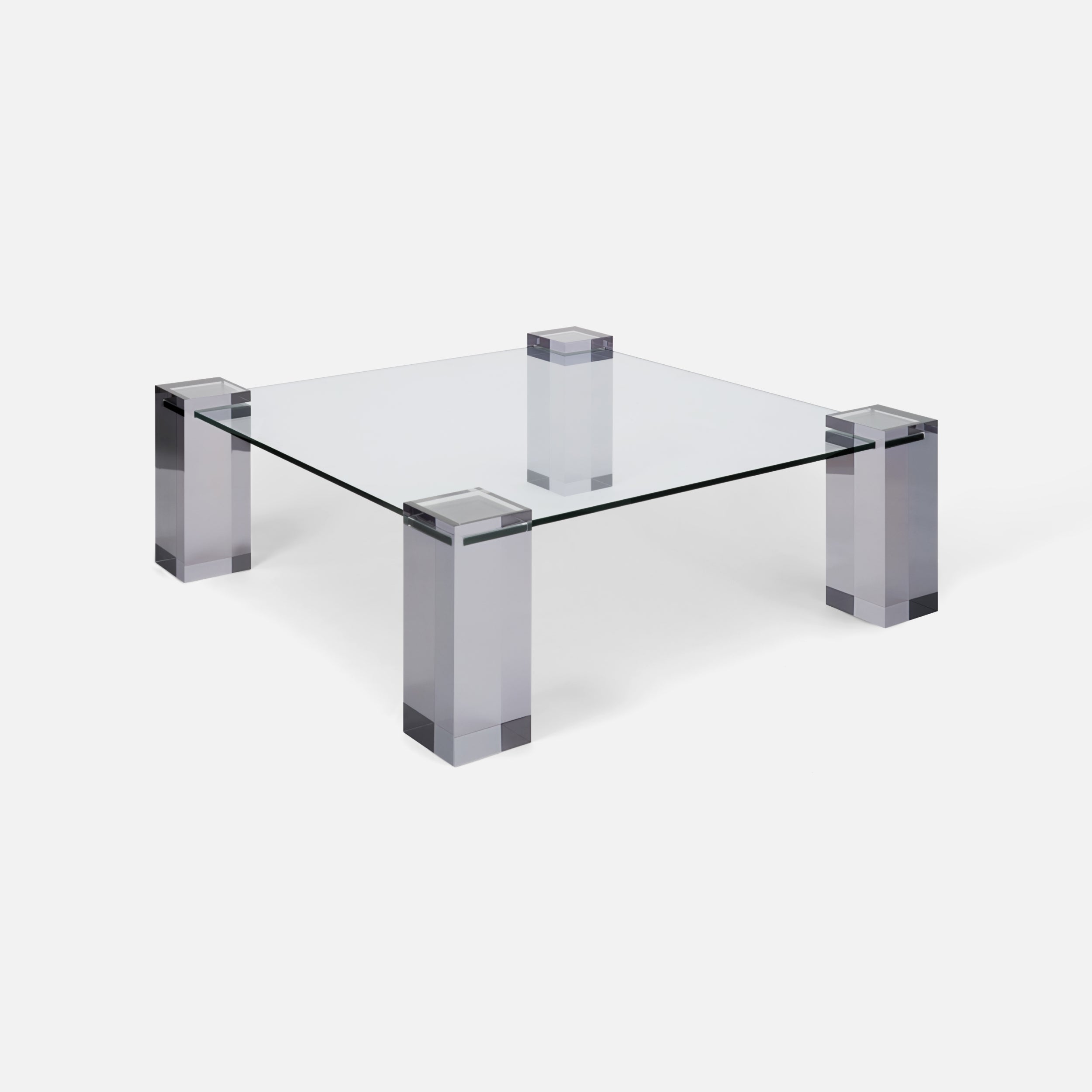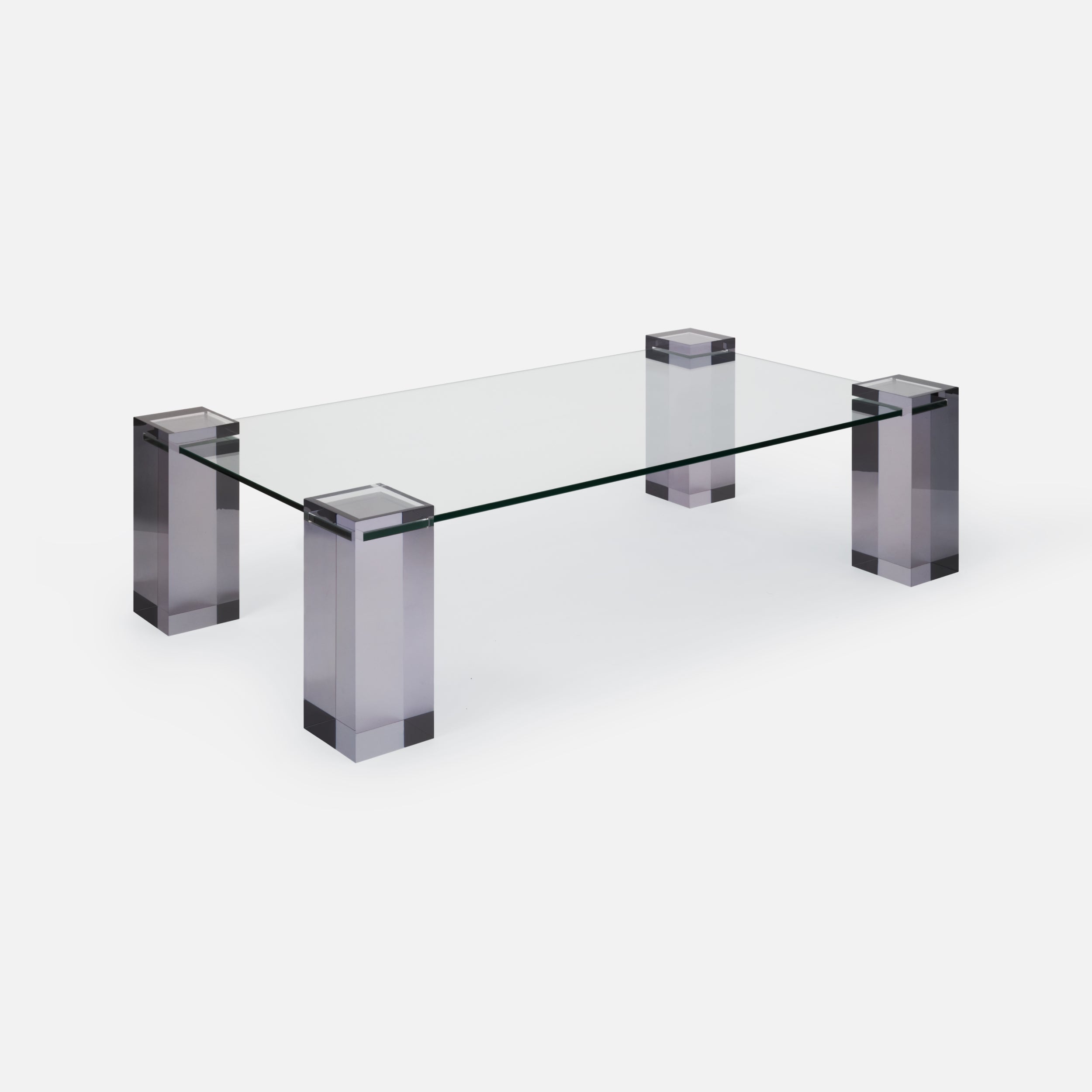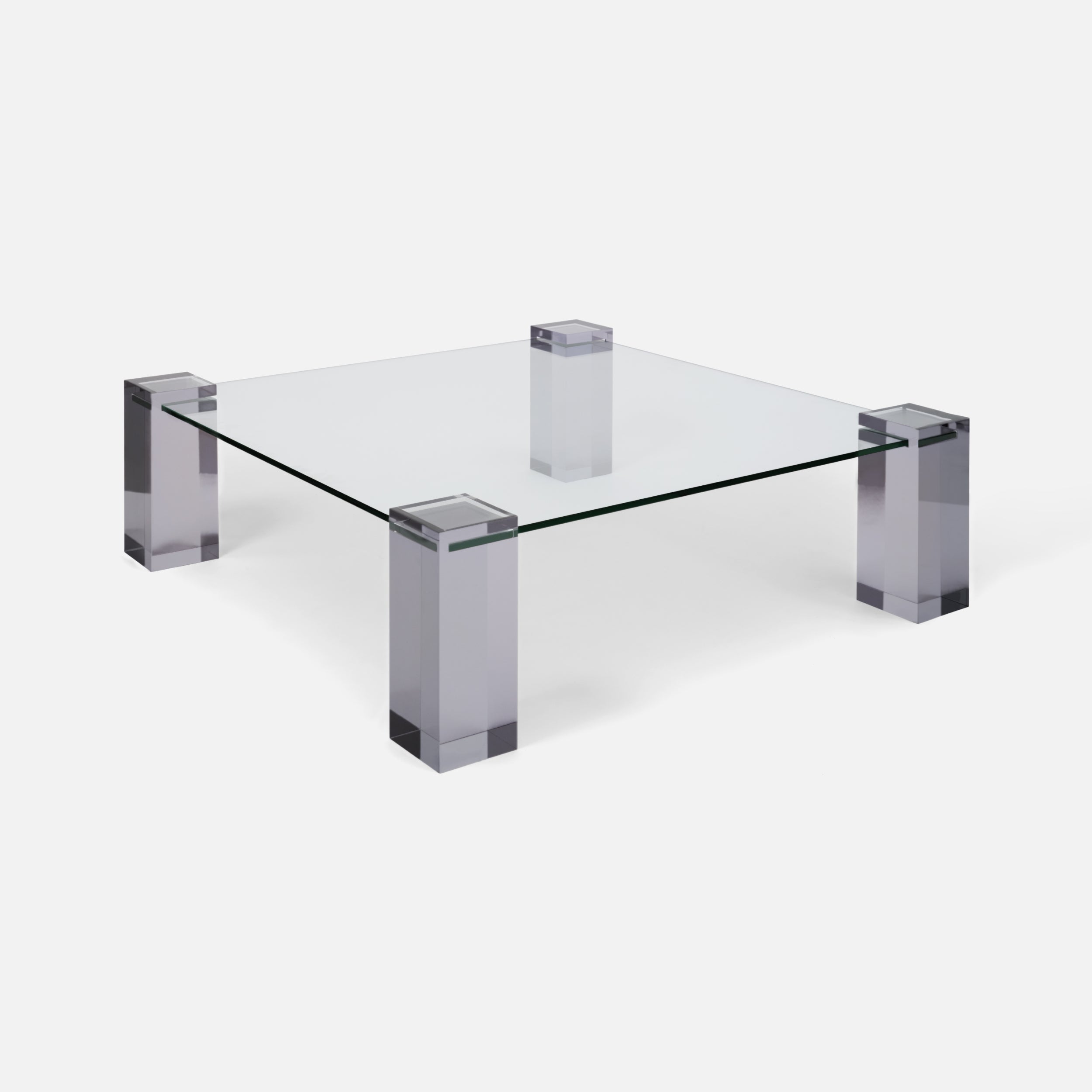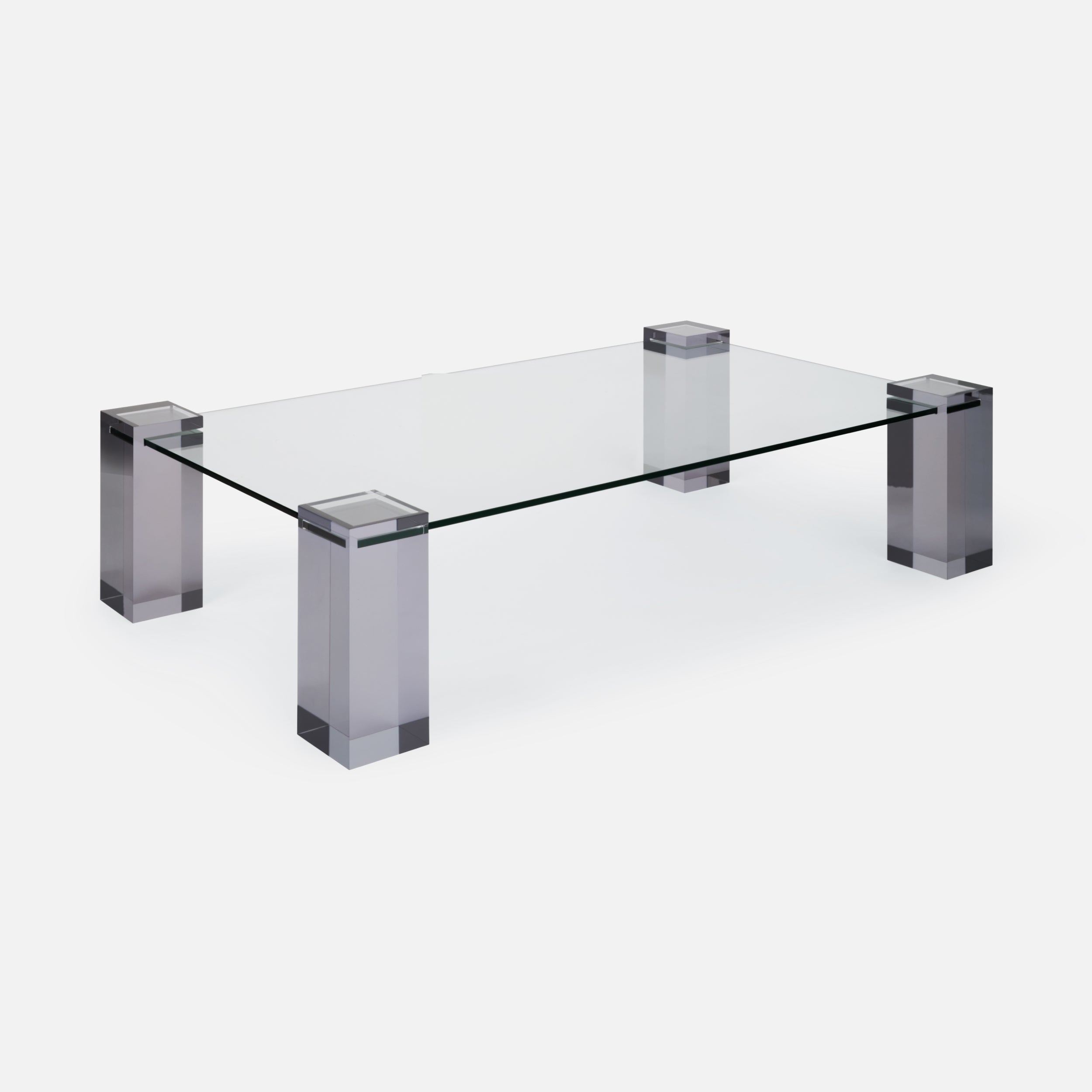 Tempered glass tabletop. Translucent acrylic legs. Ultra-polished finish.