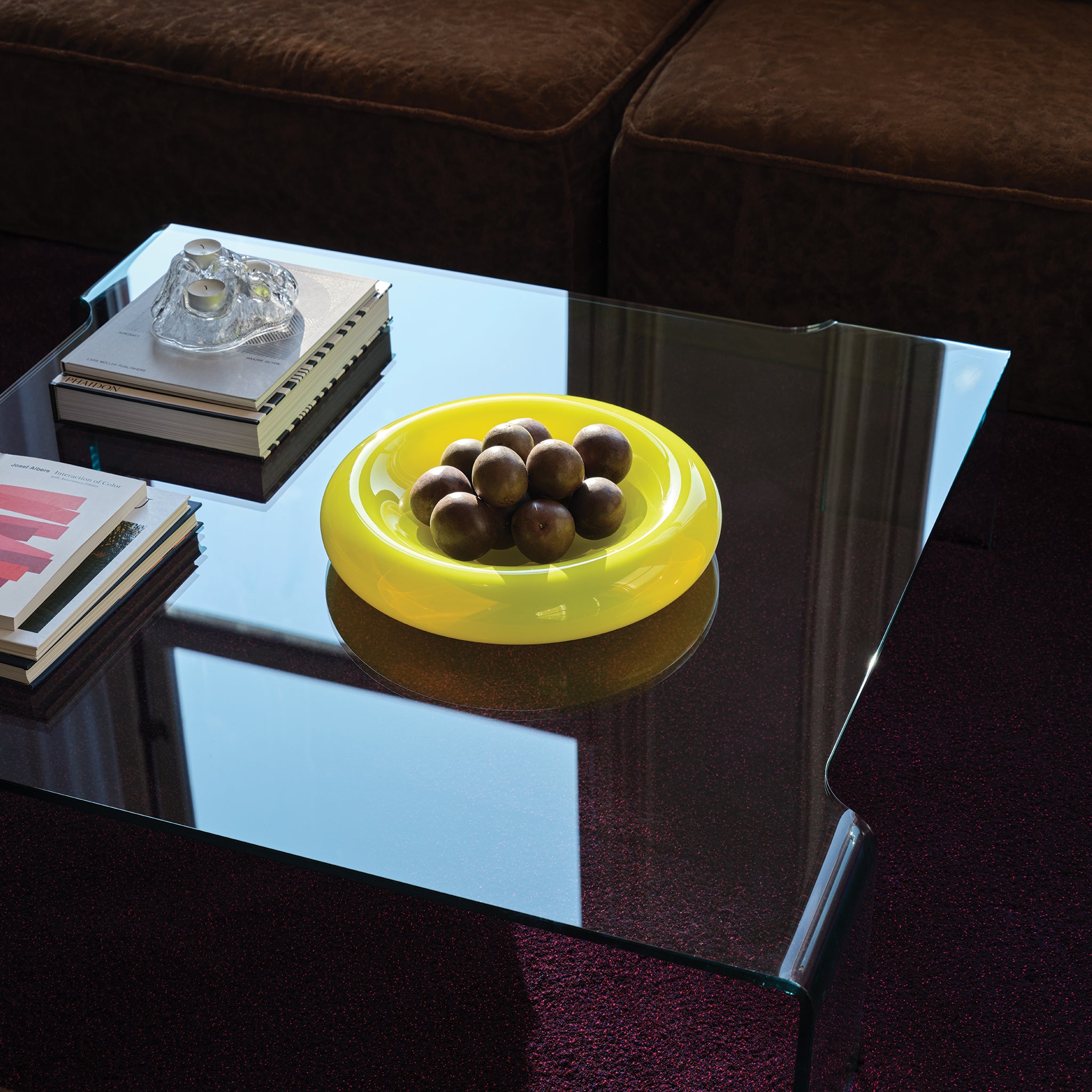 A versatile bowl lovingly crafted by hand in 100% blown glass, inspired by a gooey drop of syrup. Perfect for holding lemons, serving salad, or complimenting your table as a bold centrepiece.